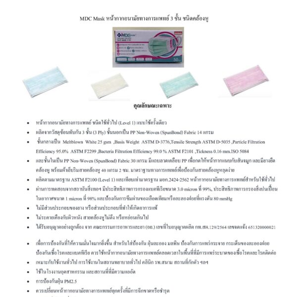 (ยกลัง 100 กล่องส่งฟรี) กล่องละ 36.- MediTech Mask หน้ากากอนามัยแพทย์ 3 ชั้น (50 ชิ้น/กล่อง)
