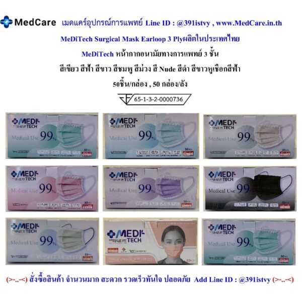 MeCare Surgical Mask Earloop 3 Ply หน้ากากแพทย์ 3 ชั้น (50 ชิ้น / กล่อง)