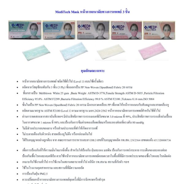 MediTech Mask หน้ากากอนามัยการแพทย์ 3 ชั้น (50 ชิ้น / กล่อง)