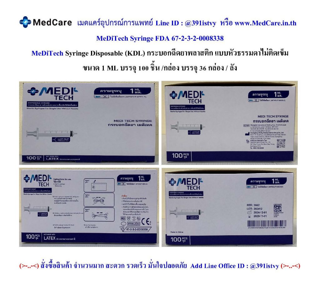 08 มิ.ย. (ยกลัง 36 กล่องส่งฟรี) กล่องละ 139.- MediTech Syringe LS 1 ML KDL ไซริ้งพลาสติก หัวธรรมดา (100 ชิ้น/กล่อง) Continue reading