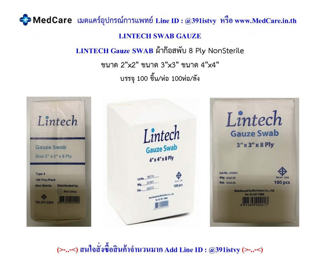 08 มิ.ย. (ยกลังส่งฟรี 100 ห่อ) ผ้าก๊อสพับ Lintech Non Sterile (100 ชิ้น/ห่อ) มี มอก. Continue reading